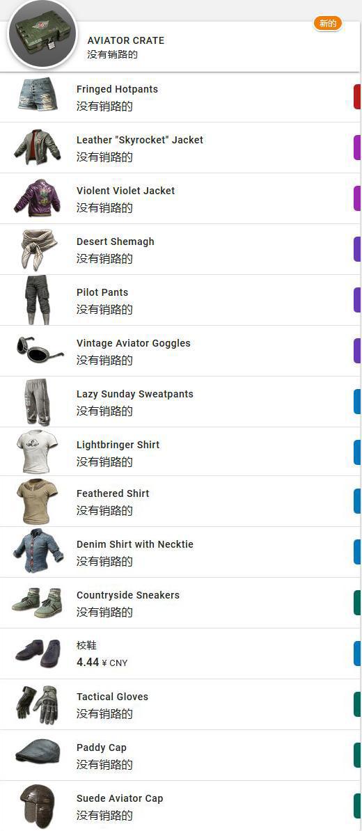 根據(jù)飾品數(shù)據(jù)網(wǎng)站查詢,這款飛行員寶箱使用全新鑰匙開(kāi)啟,鑰匙售價(jià)依舊為2.5美元,其中飾品包含牛仔熱褲、沙漠圍巾、兩件全新外套等等。