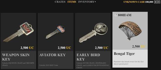 同時(shí)在之前的數(shù)據(jù)挖掘中可以看到內(nèi)購(gòu)添加了一款“孟加拉虎”降落傘皮膚,該皮膚不需要開(kāi)箱獲得,需要玩家付費(fèi)2.5美元購(gòu)買,和鑰匙一個(gè)價(jià)格,有興趣的玩家可以考慮購(gòu)買。