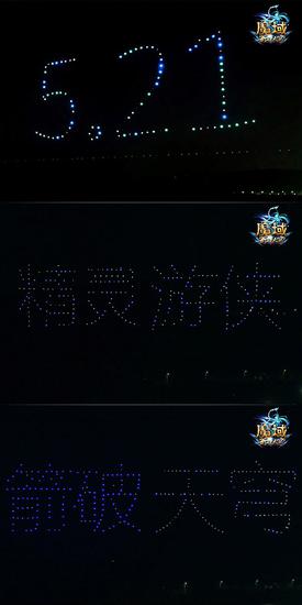 最后“弓箭”在天空中四散,接連演繹出“魔域5.21,精靈游俠箭破天穹”的字樣,正式宣告《魔域》資料片5月21日正式空降,同時也將這個美妙的無人機燈光秀定格在這唯美一幕。